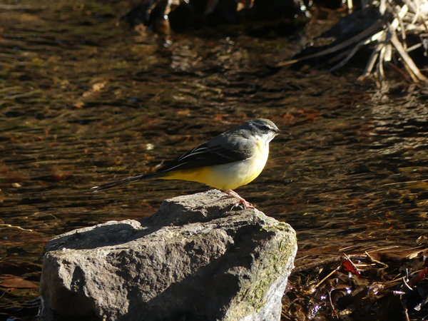 | キセキレイ いつも同じ所に出てきます。綺麗な黄色で目立っていました。(2026/1/2撮影) |