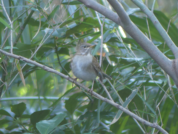 | ツグミ 川岸から見下ろすような枝にとまってくれました。今年は昨年より多いです。(2026/1/2撮影) |