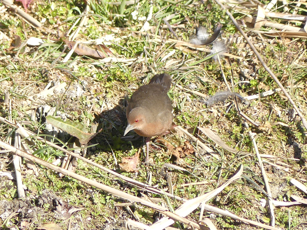 | ヒクイナ 葦原のふちから干上がって陸地になったあたりで何か食べたり水を飲んだりしていました。 |