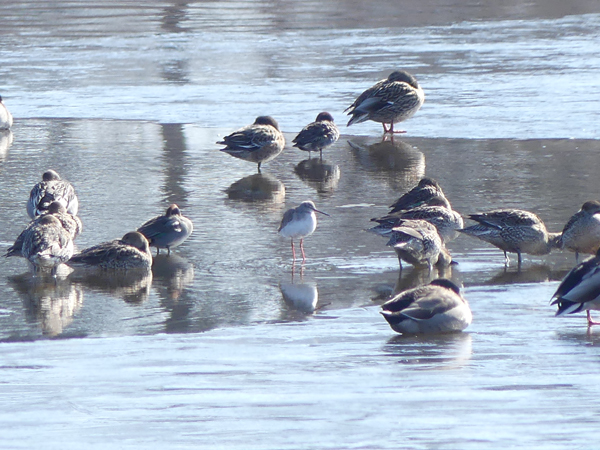 | ツルシギ 寝ているカモ類の間に居ましたが、遠かったです。 |