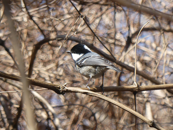 | ヒガラ 山頂近くで茂みの中を行き来していました。 |