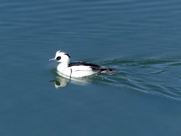 | ミコアイサ 番いが堰の近くに来ていました。ホシハジロの群や、少し離れた所にはオカヨシガモも居ました。 |