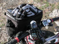 | 色々とアクセサリもつけました。 ライトはチカチカ点滅するし、サイクルコンピュータといって、スピードや積算距離を記録するメータも付けてみました。スポークに磁石を付けて、回転による磁力の変化を送信機に読み取らせてスピードを測定する仕組みだそうです。 フロントバッグもつけました。Deuterというドイツのブランドのもので、サドルバッグやズボンの裾留めもDeuter製のものです。この会社は登山用のリュックも作っていて、以前、山登りの会に居た人がリュックを持っていたのを見せてもらいましたが、良さそうな作りでした。自転車用品もよくできていると思います。 フロントバッグをつけた状態だとライトの位置に無理があるのですが、何かうまい解決案をご存知の方がいらっしゃれば、メール頂けたらと思います。 自転車で出かけた記録は、今は多摩川サイクリングロードが中心なので、「My Field」に書いていこうと思っています。将来、もっとネツが入ってきて色んな所に自転車で出没するようになったら、コーナーを独立させるかもしれません。(2003/01/01 記) |