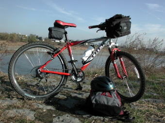 | DAHONの折り畳み自転車を買いましたので久し振りにこのページを更新します。Mu P8という機種で、簡単に折り畳めますし、スピードもそこそこ出ます。フレームに載せているのは、ボトルケージに嵌め込んだ輪行袋です。これから活用してゆこうと思います。(2010/09/21 記) | ![]() |