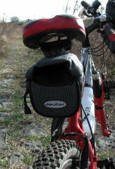 | リヤサイドバッグを新調しました。登山用品で有名なMont・Bell製のもので、しっかりした作りです。ちなみに、リヤバッグを付けていると、子供の視線が集まります。(「ママ、あの自転車変わっているよ」という声が走行中の背後から聞こえてきました。)(2003/04/30 記) | ![]() |