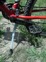 | また少しいじりました。もっと輪行したいのでスタンドを外す事を考えましたが、無いと困るのでセンタースタンドを装着しました。石突きが大きくて良いかと思ったのですが、ペダルの足に時たまひっかかります。(2004/08/20 記) | ![]() |