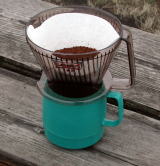 ステンレスのワイヤーで出来たコーヒーサーバーです。携帯性はこちらの方が良いですが、風にあおられたり、冷めやすいなどの問題もあります。