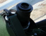 スコープのアイピースの上に、ステップアップリング(を2つつなげたもの)を載せた写真です。実際は、COOLPIX990にステップアップリングを装着して、ゴムの目当てをめくったアイピースに押し当ててデジカメの望遠写真を撮っています。